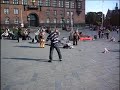 Indians playing music in Copenhagen near city hall and a drunkie is dancing